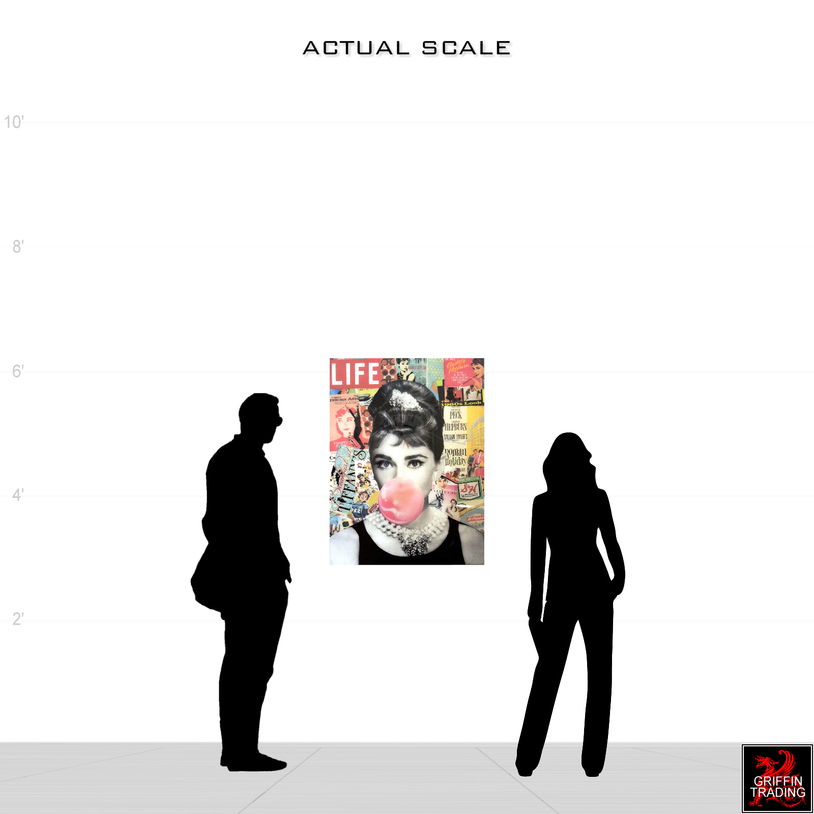 Bring timeless glamour and playful modernity into your space with “Bubble Gum Audrey,” a stunning mixed media artwork celebrating the elegance of vintage Hollywood icon Audrey Hepburn. This vibrant collage features a striking black and white portrait accented by a bold pop of color. A bubble gum pink twist that bridges classic style and contemporary pop art.